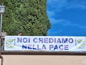Il cardinale Augusto Paolo Lojudice, arcivescovo di Siena-Colle di Val D’Elsa-Montalcino e vescovo di Montepulciano- Chiusi-Pienza lo aveva annunciato nel suo messaggio al mondo della scuola: “da oggi (era il 16 settembre) sul palazzo arcivescovile di Siena (e domani anche su quello di Montepulciano) sarà stato esposto uno striscione con la frase “Noi crediamo nella pace!”.