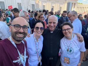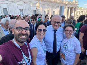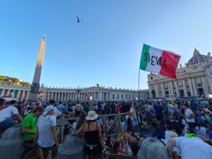 Nella giornata di ieri, i giovani delle diocesi di Siena e Montepulciano presenti a Roma per partecipare al Giubileo dei Giovani hanno preso parte all’incontro in piazza san Pietro “Tu sei Pietro”, un incontro animato da canti, letture, esibizioni di artisti e testimonianze, al termine del quale il card. Matteo Maria Zuppi, presidente della CEI, ha presieduto la professione di fede davanti a un totale di 40mila ragazzi e ragazze da tutta Italia. Durante il pomeriggio, alcuni giovani hanno anche avuto modo di scattarsi una foto con Mons. Rino Fisichella, Pro-Prefetto del Dicastero per l’Evangelizzazione, e con il sindaco di Roma Roberto Gualtieri.